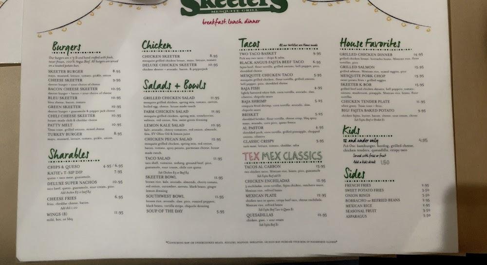 Welcome to Skeeter's Mesquite Grill, located in the heart of Kingwood, TX. Our restaurant offers a relaxed atmosphere perfect for breakfast, lunch, and dinner, featuring a wide selection of local specialties and a great variety of beers. Enjoy our quick service whether you dine in, grab takeout, or use our delivery option. With amenities like a wheelchair-accessible entrance and private dining options, we cater to everyone, including families with kids. Join us for a delicious meal and unwind with friends during our "happy hour" specials. Visit today at 4121 W Lake Houston Pkwy, or call us at +1 281-361-7168!